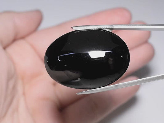 100.59ct ETW Natural Black Pyroxene Gemstone – Oval Cabochon