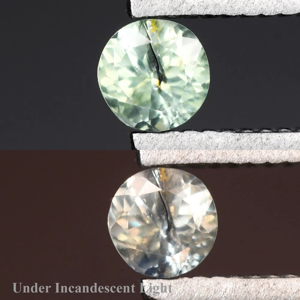 Description: Round Cut Green Alexandrite Gemstone with a green to yellow color shift