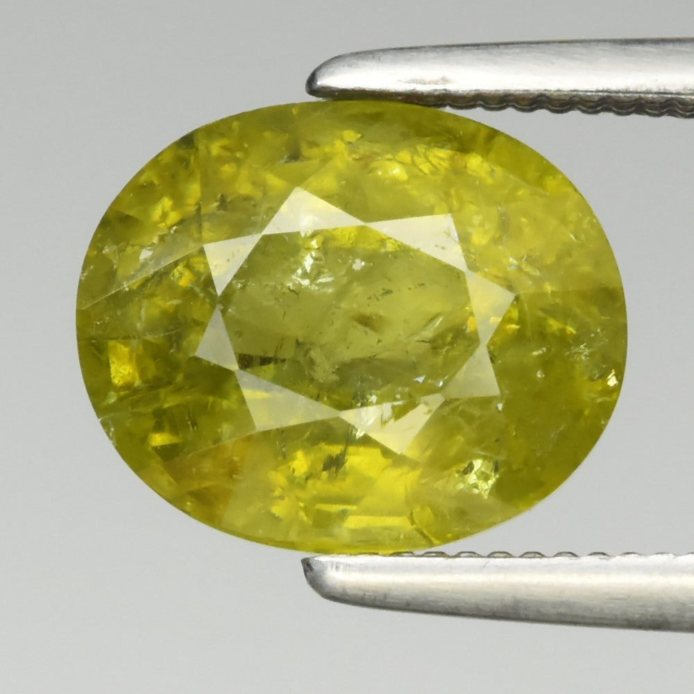 Description: Oval Cut Yellowish Green Grossular Garnet Gemstone
