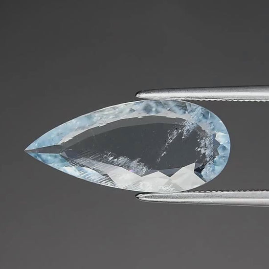 Description: Natural Pear Cut Light Blue Aquamarine Gemstone