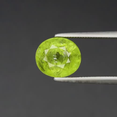 Description: Oval Cut Yellowish Green Grossular Garnet Gemstone