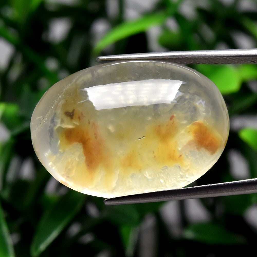 31.47ct ETW White Quartz Gemstone with Inclusions – Oval Cut Cabochon