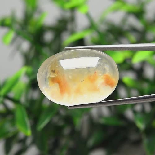 Description: Oval Cut Cabochon White Quartz Gemstone with Inclusions