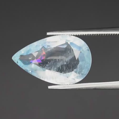 6.10ct ETW Light Blue Aquamarine Gemstone - WITH RAINBOW! – Pear Cut